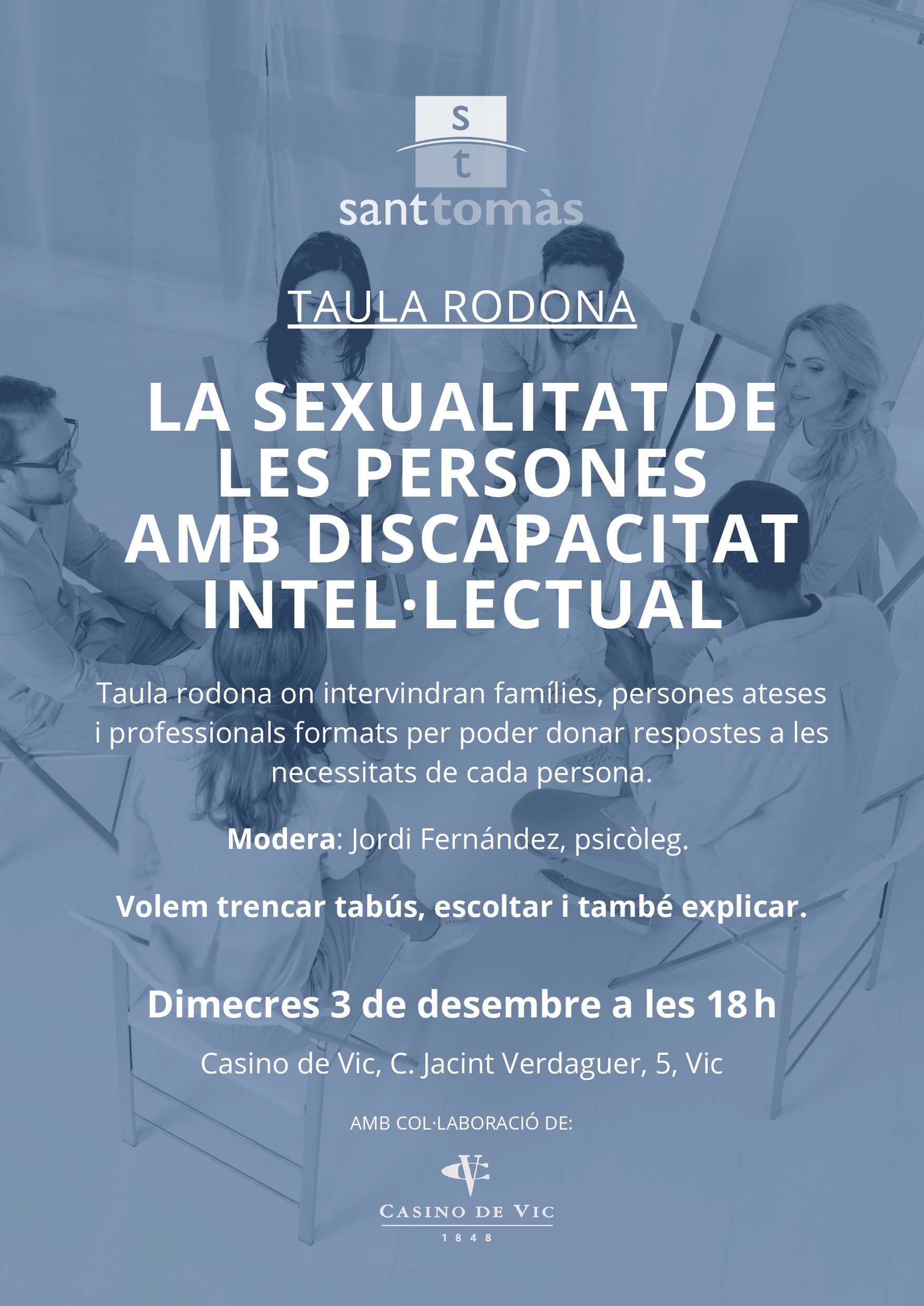 Taula rodona on intervindran famílies, persones ateses i professionals formats per poder donar respostes a les necessitats de cada persona. Modera: Jordi Fernàndez, psicòleg. Volem trencar tabús, escoltar i també explicar. Entrada lliure
