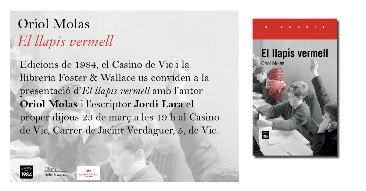 Les mirades casinesques d’Albert Coma Bau, Ferran Garcia, Carla Serrat, Pol Aregall, Sònia Moya, Jordi Casas i Júlia Vallejo Divendres 31 de març de 2023 19.30 h Casino de Vic Entrada gratuïta L’exposició és fruit de l’estada al Casino de Vic durant el cap de...