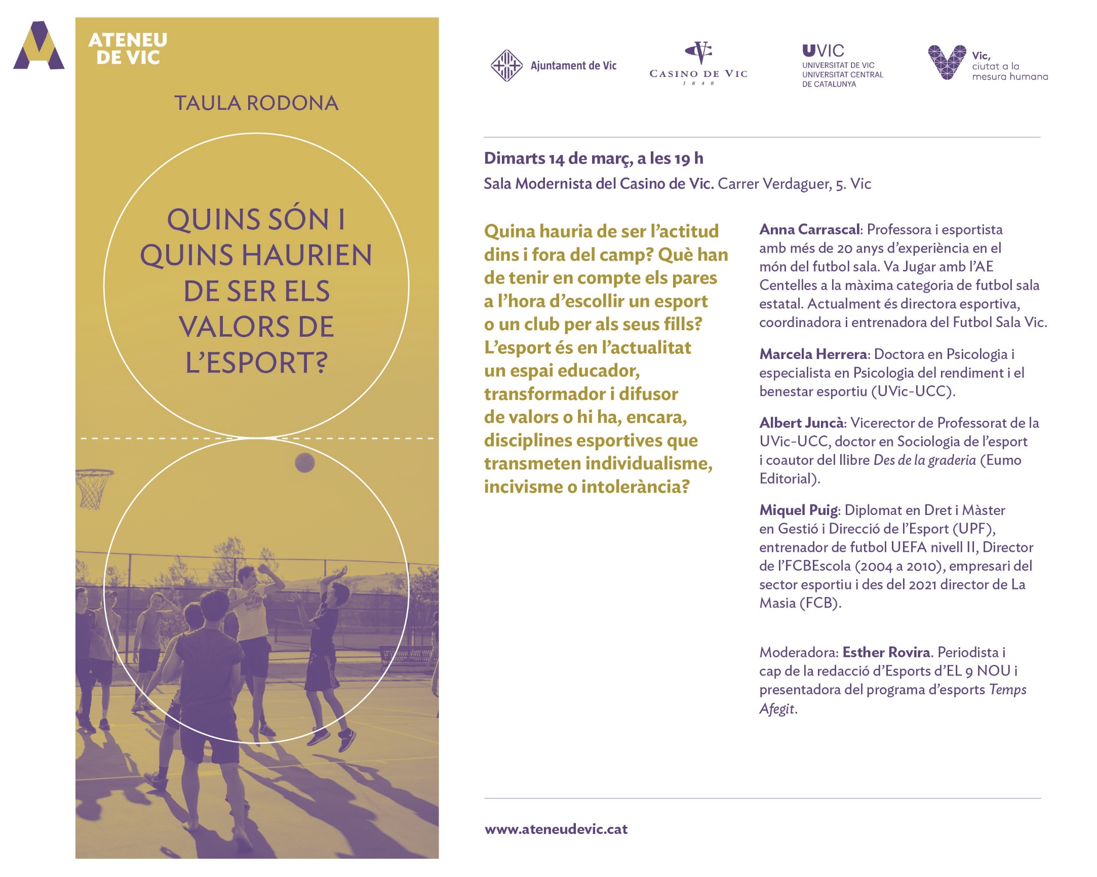Quina hauria de ser l’actitud dins i fora del camp? Què han de tenir en compte els pares a l’hora d’escollir un esport o un Club per als seus fills? L’esport és en l’actualitat un espai educador, transformador i difusor de valors? En una societat...