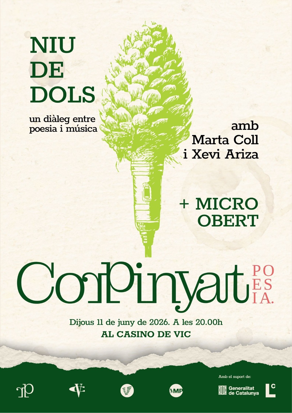 20:00 - 21:30 Niu de dols – Corpinyat 11 juny - 20:00 - 21:30 Niu de dols – Corpinyat Espectacle poètico-musical, amb Marta Coll i Xavier Ariza. Entrada lliure